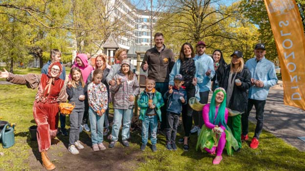 Labdarības projekta ietvaros "Allažu bērnu un ģimenes atbalsta centrs" bērni Kronvalda parkā iestāda Dižstādu